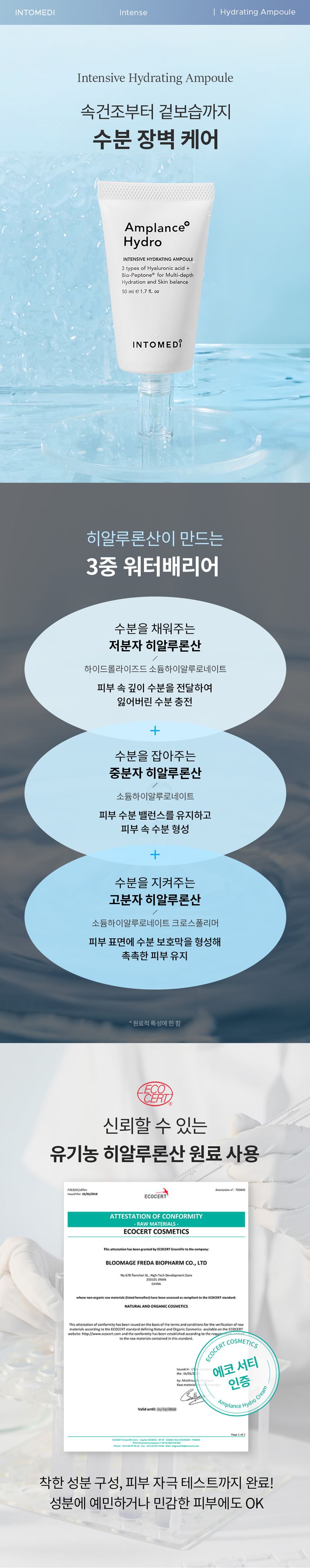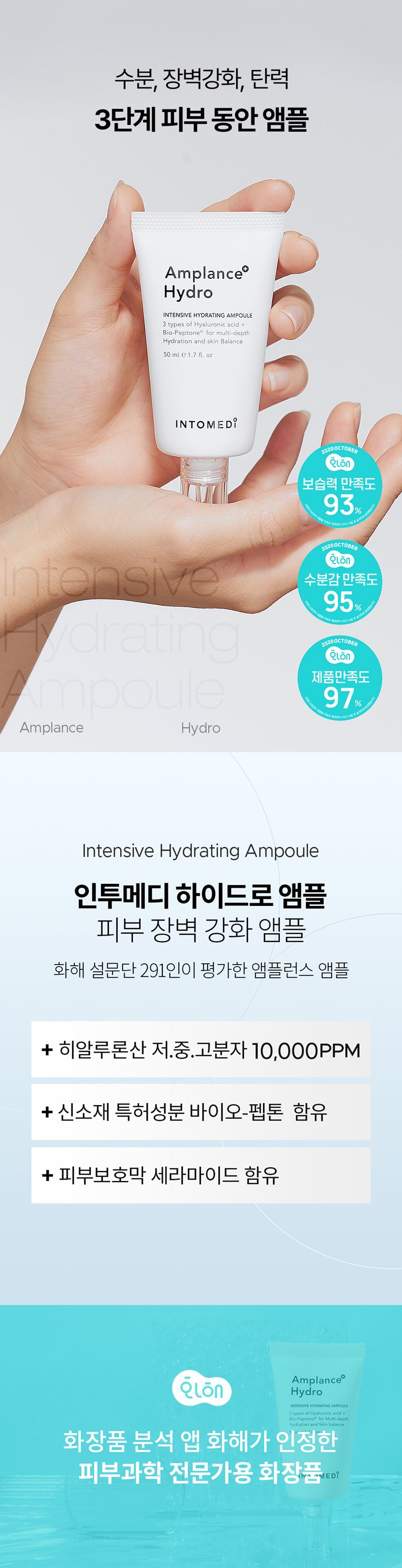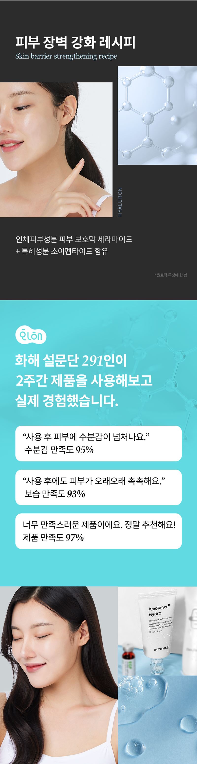 - 수분보호막 형성 : 히알루론산 2종, 글리세린, 판테놀(비타민B5)